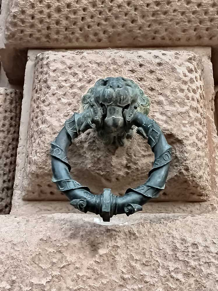 detalle ya manierista) enmarcan la puerta con frontón triangular y relieves